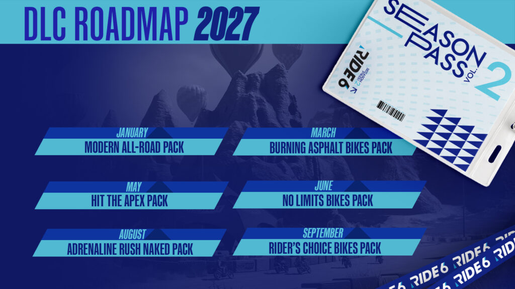 Eccoci con il piano completo dei DLC di RIDE 6. Potrete acquistare ogni espansione separatamente o ritrovarle all’interno dei due Season Pass. Se volete saperne di più sulle varie edizioni disponibili, potete trovare tutte le infomazioni a questo LINK.